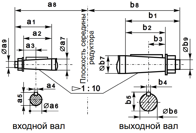 Размеры конических концов валов